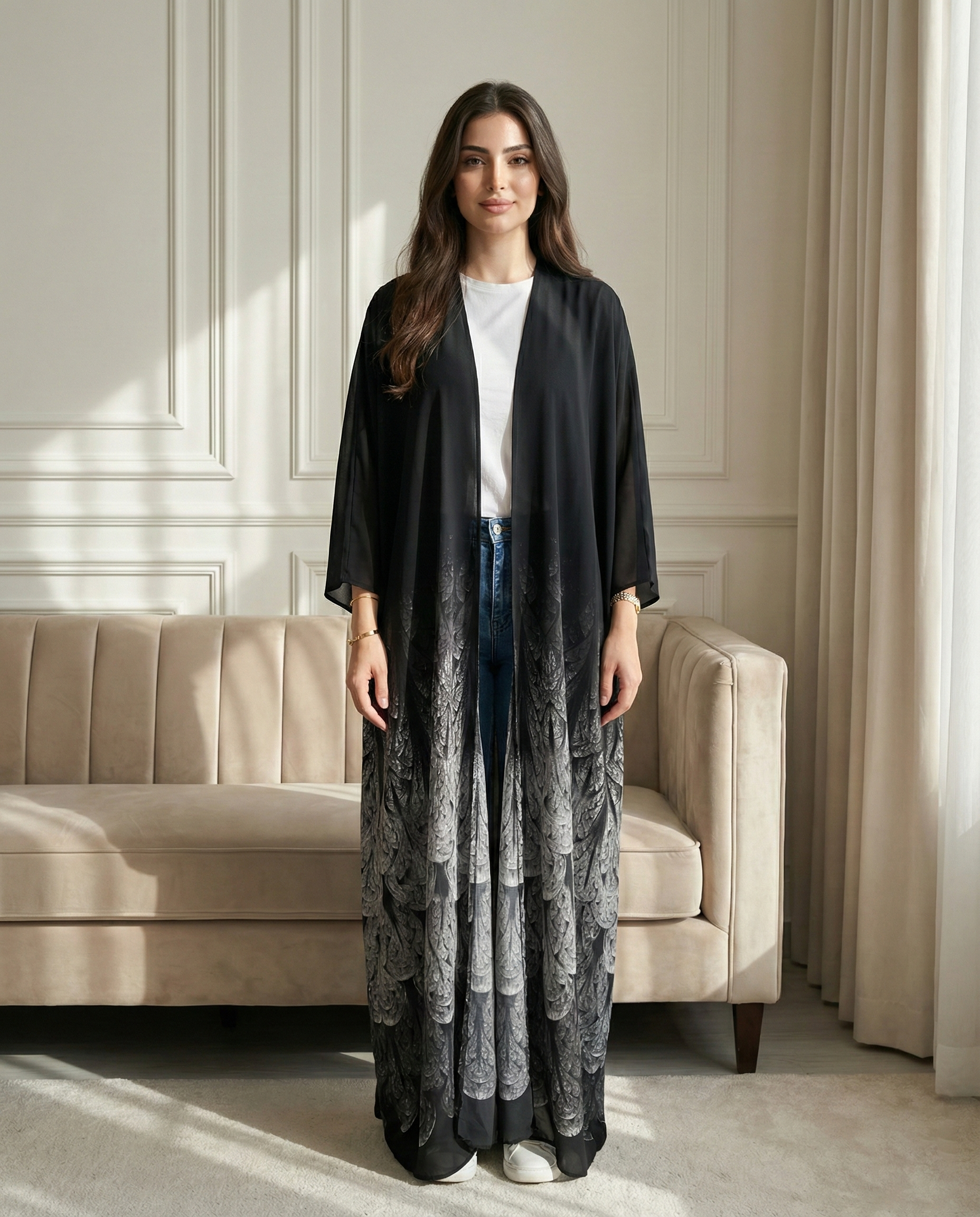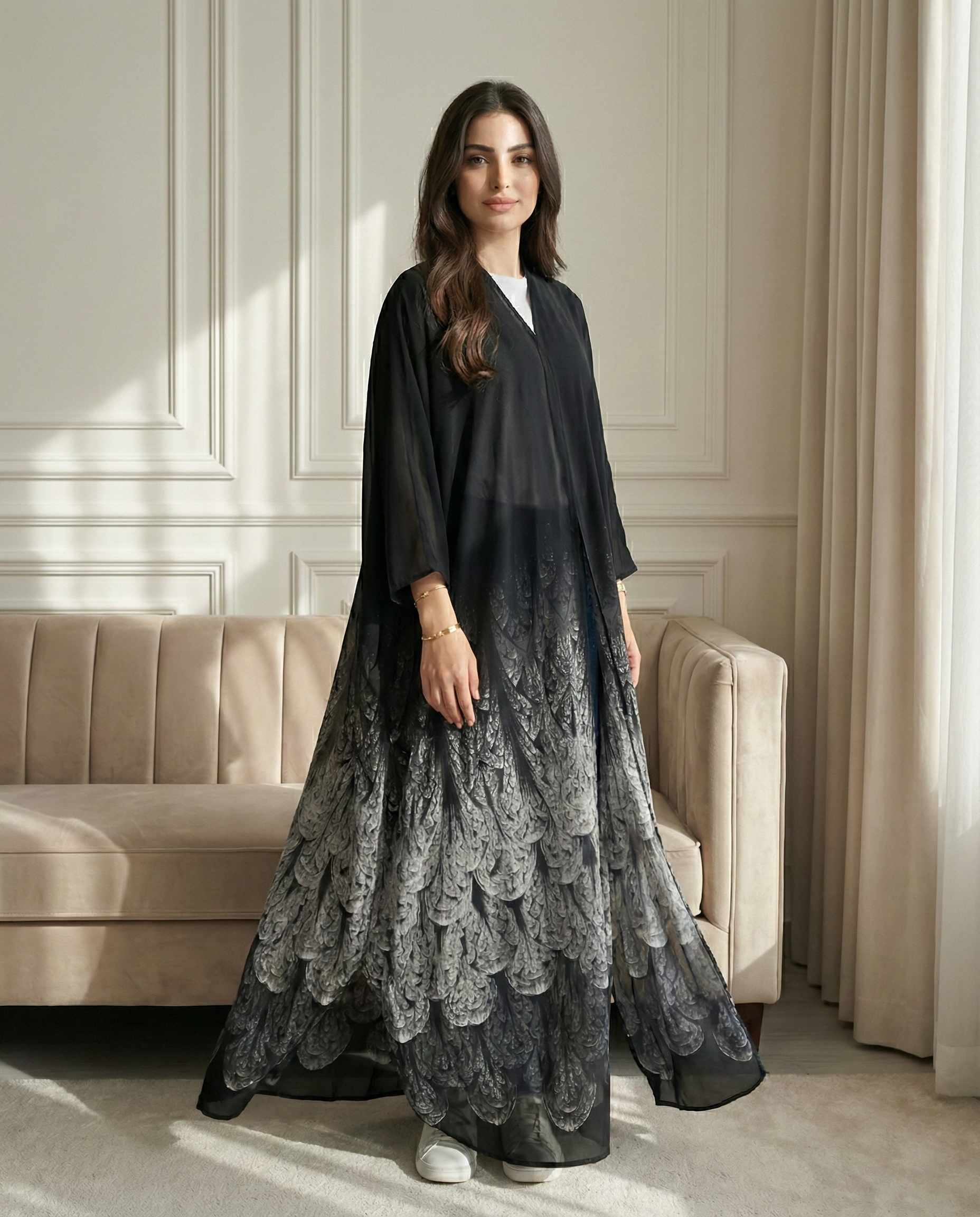 بِشت لورينزا مصنوع من شيفون جاكار إسباني فاخر، بقماش خفيف وانسيابي يمنحكِ حركة ناعمة وحضورًا راقيًا. بتفاصيل دقيقة ونقشة أنيقة تضيف عمقًا وفخامة بدون مبالغة، ليكون قطعة مميزة تناسب الإطلالات اليومية الراقية والمناسبات الخاصة بذوق عصري أنثوي. ✨